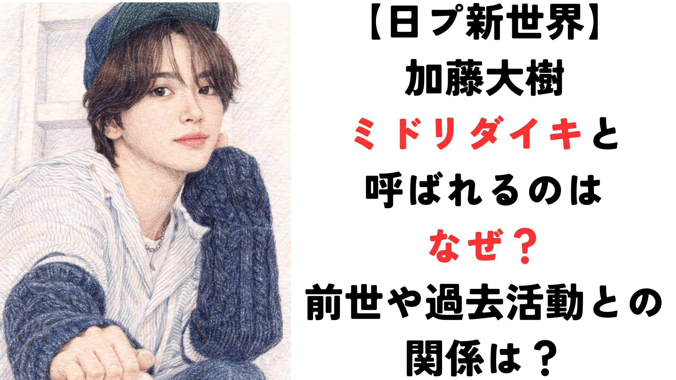 日プ新世界(PRODUCE 101 JAPAN 新世界)の練習生・加藤大樹くんがなぜ「ミドリダイキ」と呼ばれているのか、その理由や前世、過去の活動と関係を詳しくご紹介します。