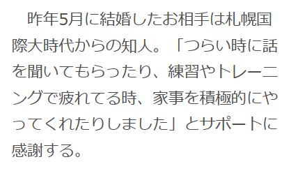 実は、吉村選手と旦那様は「札幌国際大学時代からの知人」だそうです。