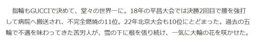 そして今まであまりいい思い出がなかったオリンピックで悲願の金メダルを獲得する🥇🏂
